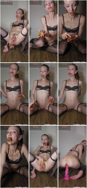 Positioning her asshole inches from your mouth, she reverse sits and demonstrates expert sphincter control as she serves the grand meal, squeezing off piece after piece of her shit for easy swallowing.